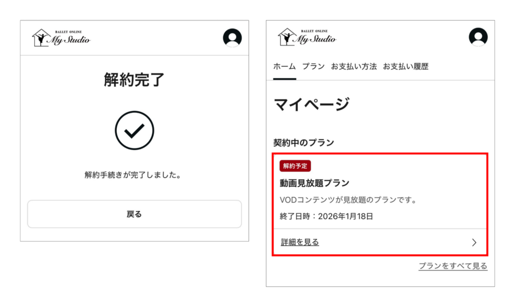 3. [マイページ]契約中のプラン が[解約予定]と表示されていることをご確認ください。