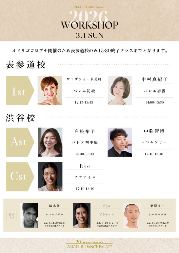 3月1日(日)※オドリゴロロプチ開催のため表参道校のみ15:30終了クラスまでとなります