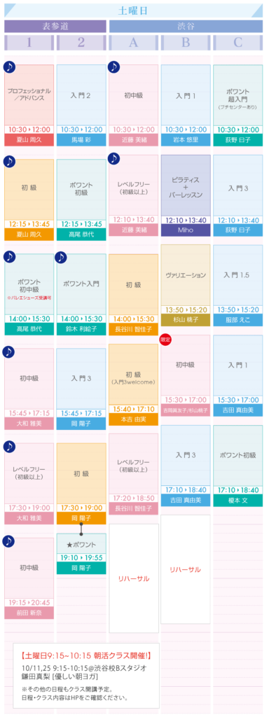 すでにクラス変更分はお知らせしておりますが、10月のタイムテーブルを公開させていただきます。ご確認の上、ご予約ください。