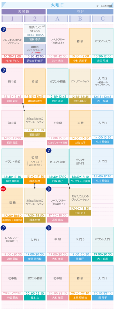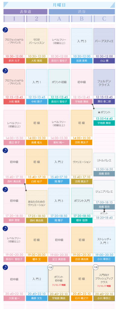 すでにクラス変更分はお知らせしておりますが、11月のタイムテーブルを公開させていただきます。ご確認の上、ご予約ください。