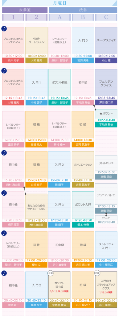 すでにクラス変更分はお知らせしておりますが、1月のタイムテーブルを公開させていただきます。ご確認の上、ご予約ください。